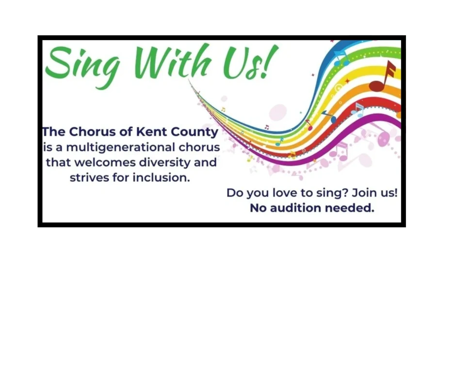 The Chorus of Kent County is a multigenerational chorus whose mission and values are deeply rooted in providing exceptional music and fostering an environment of safety and community. The chorus combines voices that are different and individual. We value diversity and strive for inclusion. We are committed to creating a community in which all members are heard, valued, and respected regardless of age, race, ethnicity, national origin, sexual orientation, religion, education, disability, or life experience.